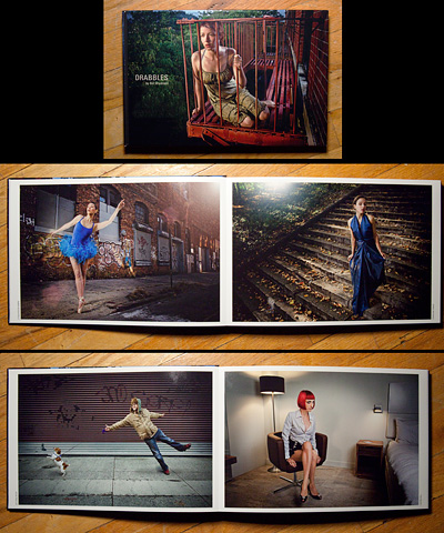 All 46 Drabble images are printed on 12×8″ Fuji Crystal Archival paper, so they’re photographic c-prints like you get from a custom lab and not four color offset printing like other book companies create. The prints are then bound by hand into in a hardcover book. I spent a lot of time going back and forth with Adorama to get the color and quality of the images to be as true to the originals as possible, so you can be assured that they’ll look great. In fact, they look so good that I’m using copies of this book in my personal portfolio.