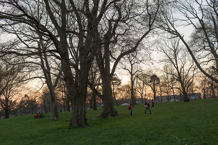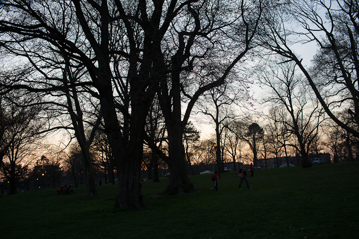 To that end I went up to Prospect Park around dusk last night and took some artistically terrible pictures with my 35mm/1.4L lens. Their saving grace is that they’re good tests of some of the extremes of what I’m talking about and therefore, perfect for our purposes.
