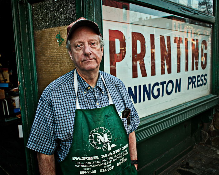 All of you who read my blog have read the multiple posts about the press that’s going out of business downstairs from my apartment. Well, I went and shot some portraits of David Harris who has run the place which his father and grandfather ran before him. Here are the results.