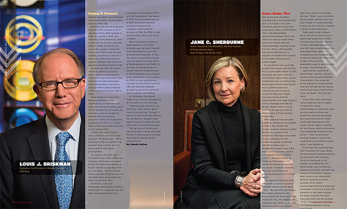 I had the opportunity a couple months ago to shoot Jane Sherburne and Louis Briskman, both super fancy corporate lawyers for a NYSE Board Members Magazine. Here is how they were used as well as the original final images. Interesting, right?