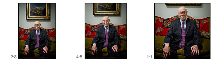 Let’s use a photo of Charlie Maxwell as an example. Now this isn’t ideal, because I’ve already taken the shot and I didn’t intend to crop, though BusinessWeek did. Anyway as you can see, there’s a different look to each, even though they’re the same image.