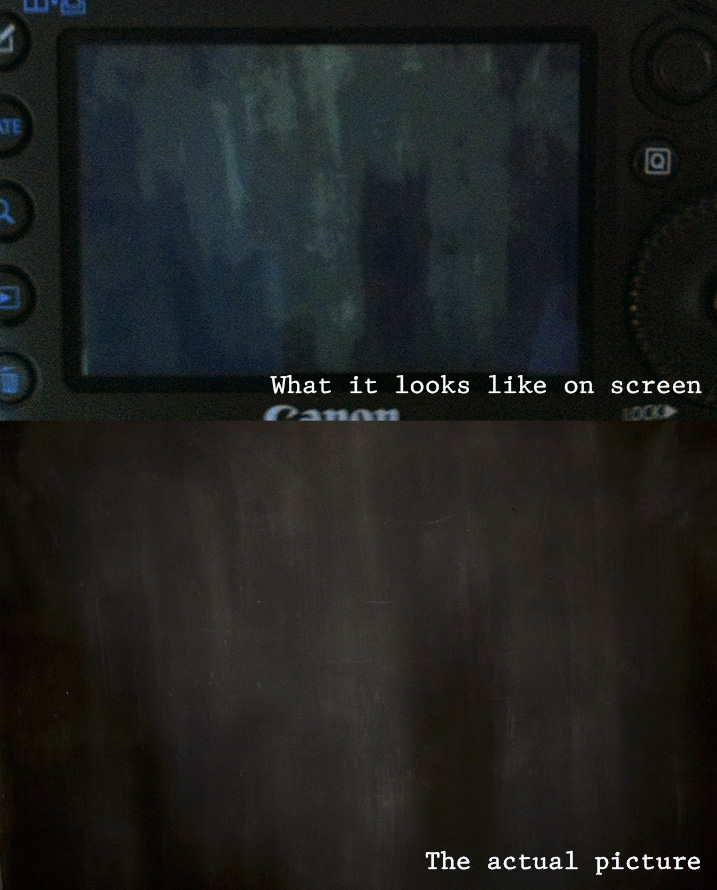 Just so you can see what I mean, here’s an iphone picture of the screen above the actual picture file of a photo of my dark painted background. Please excuse any white balance differences.