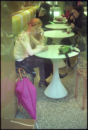 If you’re not aware of Pinkberry, it may be because they currently only exist in LA and NYC. It’s a frozen yogurt place which as it turns out seems to be a knock-off of a Korean place called Red Mango. They seemed to have copied them right down to the color/fruit name and even the Cap’n Crunch topping (for those into Pinkberry, my sister Melissa is so addicted that she has created a blog about it complete with an AWFUL digicam shot of me). But as New York Magazine said recently, ‘pinkberry stinkberry’, this is not about the yogurt or terrible pics of me, but rather the fact that they’ve got a big sign on the glass at the entrance of a camera with a slash through it and ‘No Photography Allowed’. It’s right below the ‘No Pets’ and ‘No Shoes, no Shirt, no Service’.